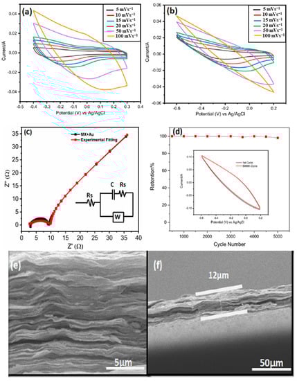 - Jiang, H.; Wang, Z.; Yang, Q.; Hanif, M.; Wang, Z.; Dong, L.; Dong, M. A novel MnO2/Ti3C2Tx MXene nanocomposite as high performance electrode materials for flexible supercapacitors. Electrochim. Acta 2018, 290, 695–703. [Google Scholar] [CrossRef]
