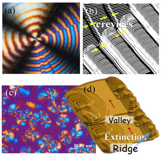 - Woo, E.M.; Lugito, G. Origins of periodic bands in polymer spherulites. Eur. Polym. J. 2015, 71, 27–60. [Google Scholar] [CrossRef]