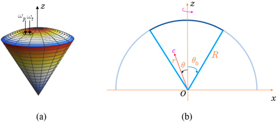 Here, we investigate the spherical sector quantum dot (QD). The three-dimensional (3D) picture in Figure 1a depicts the structure as being a conical QD with a spherical cap.