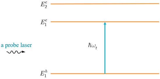 A high-intensity pump laser can couple two quantized electron states in low-dimensional semiconductor devices, causing the exciton absorption spectra to change and split [30,31]. In 1986 [30], the split, or more particularly the exciton optical Stark effect, was identified for the first time in quantum wells. Due to its potential use in ultrafast nonlinear optical devices, such as optical gating [32,33] and high-speed all-optical switching [30,34], as well as its contribution to the understanding of the interaction between photons and semiconductors [35], this separation has received considerable theoretical and experimental attention [30,31,36,37,38,39,40,41,42,43,44,45,46,47,48,49,50,51,52,53,54,55,56,57,58,59]. There are two types of separation: two-level [60] and three-level [60,61]. Several theoretical approaches, such as the renormalized wave function formulation [48], the finite difference method [49], the many-body perturbation theory [50], the photoemission theory [51], or the density matrix approach [52,53], have been utilized to study the separation thus far. Despite the fact that each of these methods has its own benefits, the first approach is usually used for the study of the three-level effect, since it provides a clear quantum-mechanical explanation of the phenomenon.