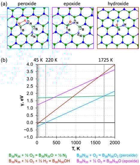 - The adsorption of oxygen onto the h−BN surface in epoxy or peroxide forms;
