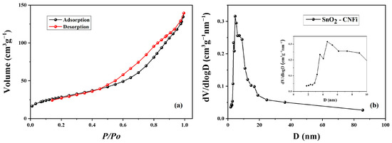 3.1. Physical Properties of SnO2-CNFi Nanocomposite
