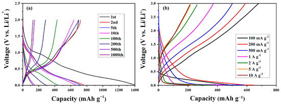 | Composite | Initial Capacity | Initial Coulombic Efficiency | Cycle Number | Remaining Capacity | Coulombic Efficiency |