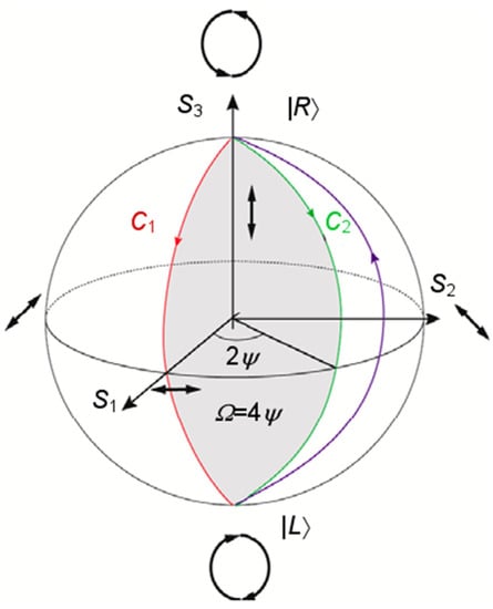 - Berry, M. The adiabatic phase and Pancharatnam’s phase for polarized light. J. Mod. Opt. 1987, 34, 1401–1407. [Google Scholar] [CrossRef]