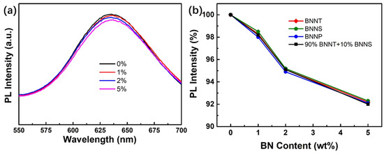 (a) Emission spectra of PiG with different content of BNNT; (b)PL intensity of PiG with differnent BN nanomaterial.