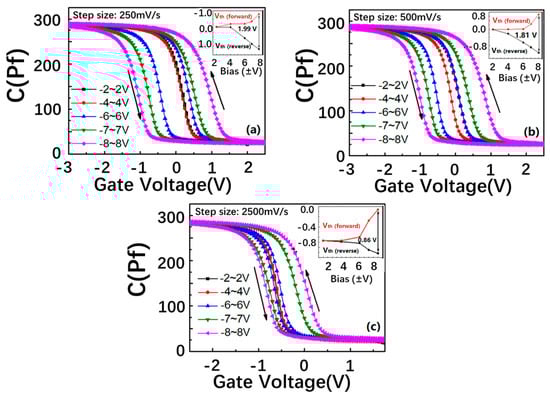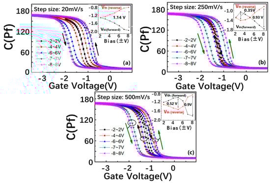 - Duan, T.; Ang, D.S. Capacitance hysteresis in the high-k/metal gate-stack from pulsed measurement. IEEE Trans. Electron. Devices 2013, 60, 1349–1354. [Google Scholar] [CrossRef]