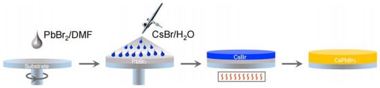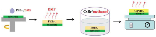 - Ding, X.; Zhang, Y.; Sheng, F.; Li, Y.; Zhi, L.; Cao, X.; Cui, X.; Zhuang, D.; Wei, J. Preparation of CsPbBr3 Films for Efficient Perovskite Solar Cells from Aqueous Solutions. ACS Appl. Energy Mater. 2021, 4, 5504–5510. [Google Scholar] [CrossRef]