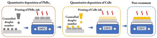 - Zhang, L.; Chen, S.; Zeng, J.; Jiang, Z.; Ai, Q.; Zhang, X.; Hu, B.; Wang, X.; Yang, S.; Xu, B. Inkjet-Printing Controlled Phase Evolution Boosts the Efficiency of Hole Transport Material Free and Carbon-Based CsPbBr3 Perovskite Solar Cells Exceeding 9%. Energy Environ. Mater. 2022, e12543. [Google Scholar] [CrossRef]