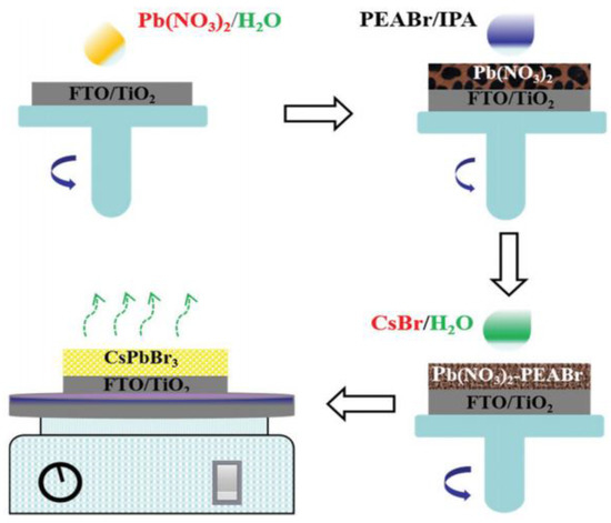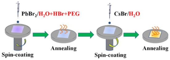 - Gao, B.; Meng, J. High efficiently CsPbBr3 perovskite solar cells fabricated by multi-step spin coating method. Sol. Energy 2020, 211, 1223–1229. [Google Scholar] [CrossRef]