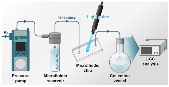 Setup used for the investigation of H2 production under microfluidic conditions.