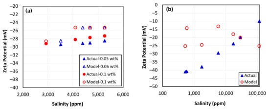 - Shehata, A.M.; Nasr-El-Din, H.A. Zeta Potential Measurements: Impact of Salinity on Sandstone Minerals. Proc. SPE Int. Symp. Oilf. Chem. 2015, 2, 789–805. [Google Scholar] [CrossRef]