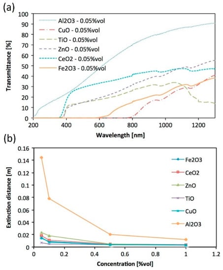 - Said, Z.; Saidur, R.; Rahim, N.A. Optical properties of metal oxides based nanofluids. Int. Commun. Heat Mass Transf. 2014, 59, 46–54. [Google Scholar] [CrossRef]