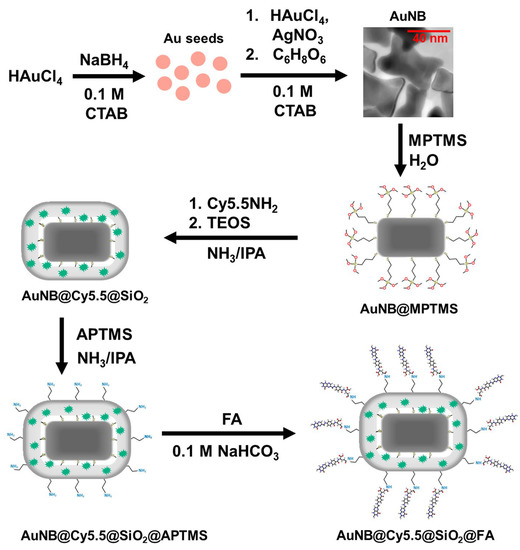 2.2. Preparation of AuNB@Cy5.5@SiO2@FA Nanotags