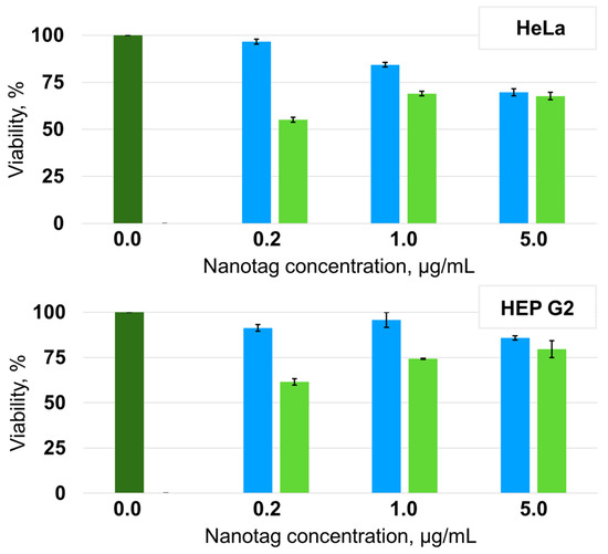 3.5. Study of Nanotag Cytotoxity by Mitochondrial Reductase Activity Assay