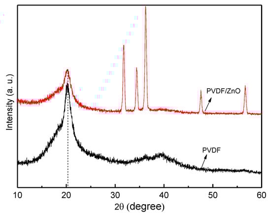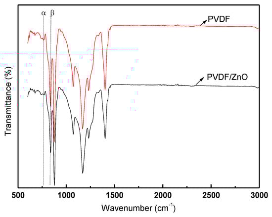 FTIR spectra of PVDF and PVDF/ZnO.