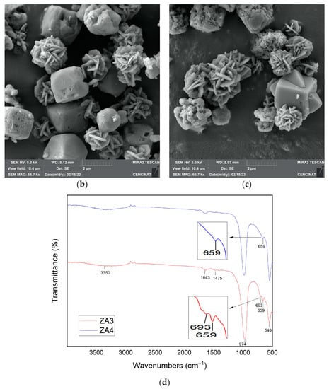 3.2.5. Effect of the Temperature of Calcination of Mining Tailing on the Synthesis of LTA Zeolite