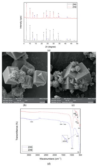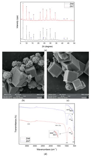 - Ginting, S.B.; Yulia, Y.; Wardono, H.; Darmansyah; Hanif, M.; Iryani, D.A. Synthesis and Characterization of Zeolite Lynde Type A (LTA): Effect of Aging Time. J. Phys. Conf. Ser. 2019, 1376, 012041. [Google Scholar] [CrossRef]