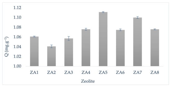 2.6. Study of the Adsorption Behaviour of the Synthesized Zeolites