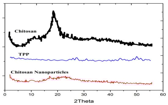 XRD patterns of pure chitosan, TPP, and chitosan nanoparticles reproduced from Ali et al. [59].
