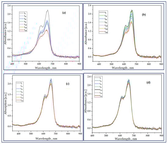 where At = the absorbance of the sample solution at time t, and A0 = the initial concentration. Based on the Beer–Lambert law, the At/A0 ratio was taken equal to the absorbance ratio At/A0 with At and A0 being the absorbance at the 665 nm band maximum of MB (after subtracting the background) at time t and at t = 0, respectively.