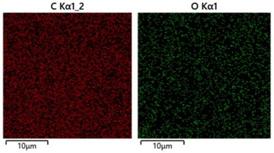 EDX maps of carbon (C) and oxygen (O) on the bulk 3-μm grating inside the PET sample.