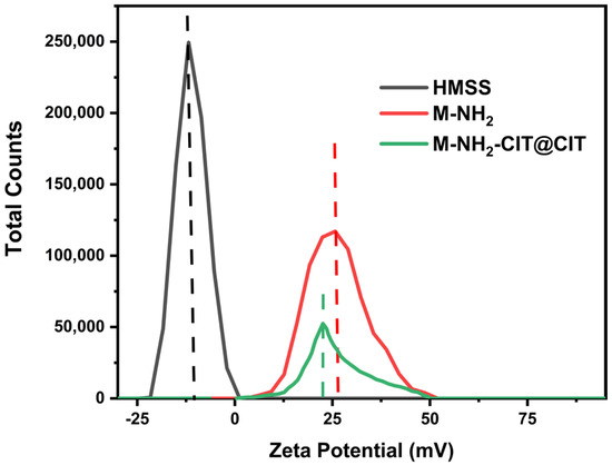 | Materials | Surface Area (m2/g) | Average Pore Diameter (nm) | Pore Volume (m3/g) | Zeta Potential (mV) | The Average Size (nm) |
