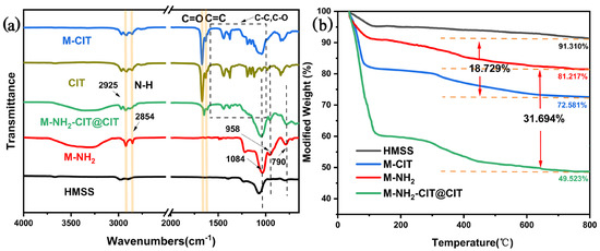 2.3. Fabrication of Amino-Modified HMSS (M-NH2)