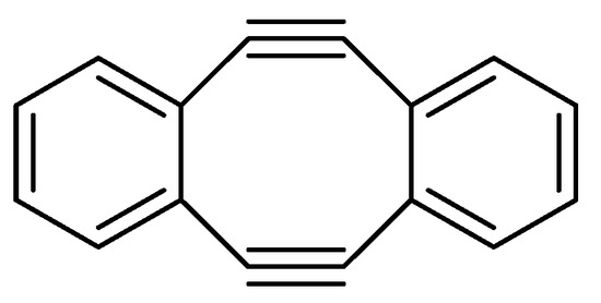 - Wong, H.N.C.; Garratt, P.J.; Sondheimer, F. Unsaturated eight-membered ring compounds. XI. Synthesis of sym-dibenzo-1,5-cyclooctadiene-3,7-diyne and sym-dibenzo-1,3,5-cyclooctatrien-7-yne, presumably planar conjugated eight-membered ring compounds. J. Am. Chem. Soc. 1974, 96, 5604–5605. [Google Scholar] [CrossRef]