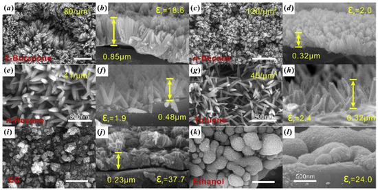 - Jin, Q.; Wen, W.; Zheng, S.; Jiang, R.; Wu, J.M. Branching TiO2 Nanowire Arrays for Enhanced Ethanol Sensing. Nanotechnology 2021, 32, 295501. [Google Scholar] [CrossRef]