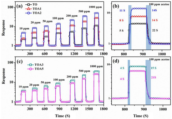 - Ge, W.; Jiao, S.; Chang, Z.; He, X.; Li, Y. Ultrafast Response and High Selectivity toward Acetone Vapor Using Hierarchical Structured TiO2 Nanosheets. ACS Appl. Mater. Interfaces 2020, 12, 13200–13207. [Google Scholar] [CrossRef]