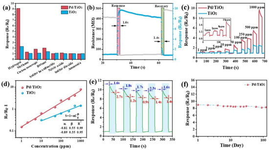 - Chen, N.; Deng, D.; Li, Y.; Liu, X.; Xing, X.; Xiao, X.; Wang, Y. TiO2 Na-noparticles Functionalized by Pd Nanoparticles for Gas-Sensing Application with Enhanced Butane Response Performances. Sci. Rep. 2017, 7, 7692. [Google Scholar] [CrossRef]