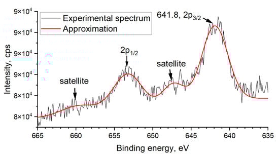 X-ray photoelectron spectroscopy (XPS) is one of the most advanced techniques for discovering the oxidation state of elements in different compounds. The influence of chemical factors on electron binding energy (BE) is the biggest for the pre-valence shell of the atom. Thus, using the Mn 3s region to determine the oxidation state is better. However, the attempt to obtain the Mn 3s spectrum for SnO2_Mn1 failed due to apparatus restrictions and too low manganese content. Besides observed Mn 2p spectrum was useless for this aim: although the obtained binding energy of 641.8 eV for Mn 2p3/2 can be attributed to Mn (IV) in MnO2 [30], according to the published data, the difference between Mn 2p3/2 peaks for Mn +3 and+4 consists only 0.5–1 eV [31,32]. This fact makes XPS analysis of the manganese chemical state uninformative for such samples as SnO2_Mn1 (Figure 7) or SnO2_Mn10_w, where Raman spectroscopy can’t detect the manganese-containing phase.