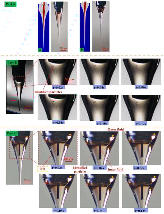 4.1. Velocity Field and Voltage Influence on the Coaxial Cone Jets Using Assisted-Nib and Normal Needle