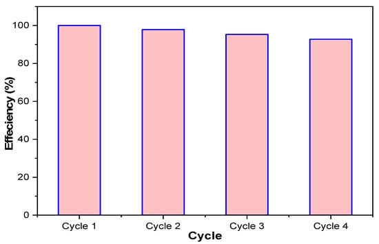 The MUCNPs sorbent was regenerated in four consecutive batches. The efficiency of the regenerated MUCNPs was examined by mixing 50 mg of sorbent with 120 mL CHDNG solution (Figure 6). The MUCNPs showed an average removal percentage of 97.4% during the four cycles with an RSD of 2.6%. The excellent performance of regenerated MUCNPs can be attributed to the nature of the physisorption, with the sorption being controlled by LD and the one-layer sorption trend (LM).