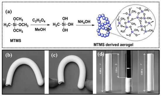 - Hayase, G.; Kanamori, K.; Nakanishi, K. New flexible aerogels and xerogels derived from methyltrimethoxysilane/dimethyldimethoxysilane co-precursors. J. Mater. Chem. 2011, 21, 17077–17079. [Google Scholar] [CrossRef]
