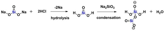 Reaction mechanisms of neutralization and condensation of sodium silicate.