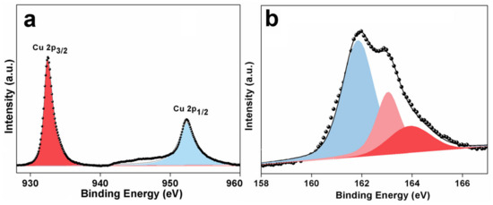 (a) Cu 2p, and (b) S 2p XPS spectra of S-1.