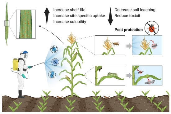 Role of nano-pesticides and their benefits (drawn using bioRender website https://app.biorender.com/, accessed on 1 December 2023).