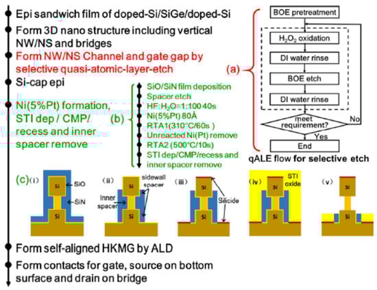 The process of VSAFETs, including the flow of selective qALE, and the flow and diagram of the Ni (Pt) silicide process. Reprinted with permission from ref. [9]. Copyright 2021 IEEE Publisher.