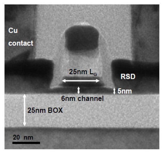 The typical cross-section TEM of an ultra-thin FDSOI device [66]. Reprinted with permission from ref. [66]. Copyright 2011 IOP Publishing.