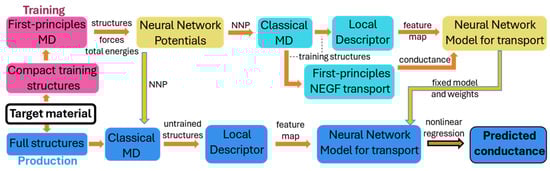In practical TCAD applications in the development of the 5 nm node and beyond, quantum transport features and device merits are essential in simulations. Apart from the calculation of electrostatic properties, the quantum transport simulation using the Non-Equilibrium Green Function (NEGF) method is performed along with the machine learning method as reported in recent studies. M. Burkle et al. have proposed an NN-NEGF simulation framework that could predict the conductance of a large system whose prediction accuracy agrees with the experiment qualitivity and the calculation cost is only a fraction of the conventional first-principle methods, as shown in Figure 11 [128]. Additionally, recently Y. Zhou et al. presented AD-NEGF, the first end-to-end differentiable NEGF model for quantum transport simulation, where the numerical calculation is carried out in the deep learning framework Pytorch v2.2.2, and the backward gradient is calculated efficiently using the proposed implicit layer technique [129]. As we could see above, the machine learning method has been a strong candidate to overcome the bottleneck of computation efficiency in the first-principle method for device analysis and optimization.