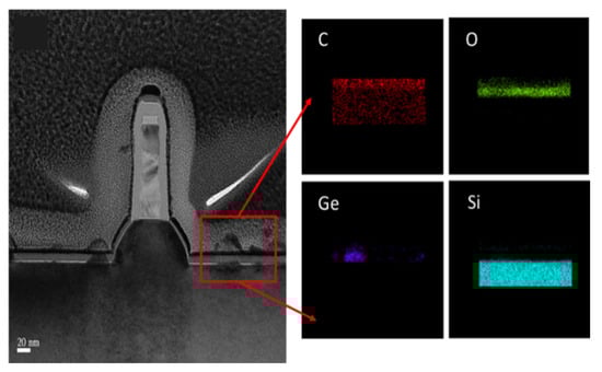 High-resolution TEM micrograph with detailed information about energy-dispersive X-ray spectroscopy (EDX) analysis. The SiN dummy gate has been dry-etched followed by dHF for 60 s to stripe the oxide layer on the sidewall. Reprinted from ref. [11]. Copyright 2021 ACS Publisher.