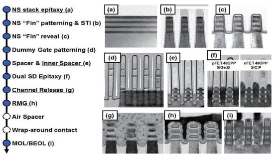 Further studies on GAAFET have been reported, including high-mobility channel materials, e.g., Ge/GeSn [14,15,16,17] and III–V [18], and wide bandgap materials, e.g., GaN [19,20].