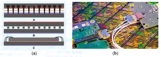 - Atabaki, A.H.; Moazeni, S.; Pavanello, F.; Gevorgyan, H.; Notaros, J.; Alloatti, L.; Wade, M.T.; Sun, C.; Kruger, S.A.; Meng, H.; et al. Integrating photonics with silicon nanoelectronics for the next generation of systems on a chip. Nature 2018, 556, 349–354. [Google Scholar] [CrossRef]