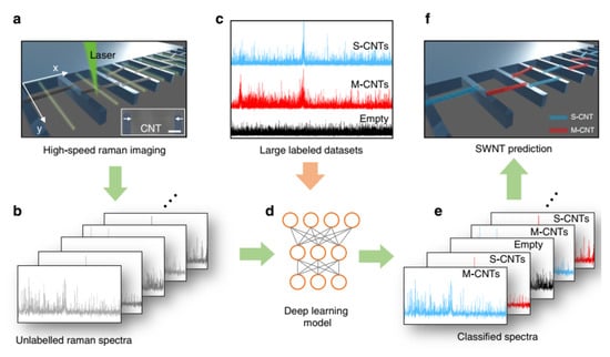 - Zhang, J.; Perrin, M.L.; Barba, L. High-speed identification of suspended carbon nanotubes using Raman spectroscopy and deep learning. Microsyst. Nanoeng. 2022, 8, 19. [Google Scholar] [CrossRef]
