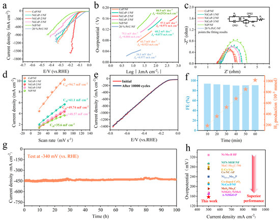 - Sun, J.; Ren, M.; Yu, L.; Yang, Z.; Xie, L.; Tian, F.; Yu, Y.; Ren, Z.; Chen, S.; Zhou, H. Highly efficient hydrogen evolution from a mesoporous hybrid of nickel phosphide nanoparticles anchored on cobalt phosphosulfide/phosphide nanosheet arrays. Small 2019, 15, 1804272. [Google Scholar] [CrossRef]