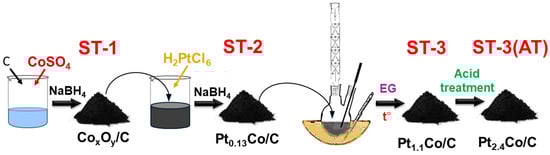 3.2. Catalytic Activity of PtCo/C Catalysts Synthesized with Three-Step Method