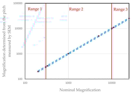 Figure 3 shows an example of measurements taken over the entire range of magnifications along the X-axis.