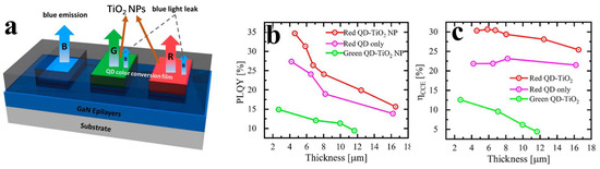 - Du, Z.; Li, D.; Guo, W.; Xiong, F.; Tang, P.; Zhou, X.; Zhang, Y.; Guo, T.; Yan, Q.; Sun, J. Quantum Dot Color Conversion Efficiency Enhancement in Micro-Light-Emitting Diodes by Non-Radiative Energy Transfer. IEEE Electron Device Lett. 2021, 42, 1184–1187. [Google Scholar] [CrossRef]