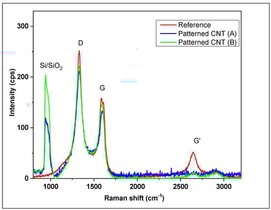 Raman spectra of reference and patterned CNT arrays.